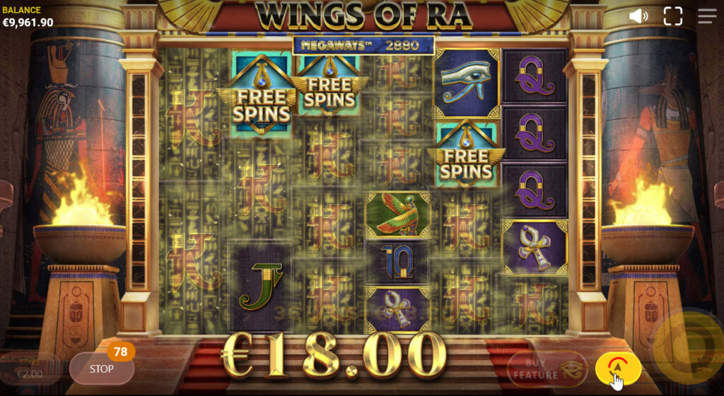 Avec un RTP de 95,69% et une volatilé élevée, Wings of RA Megaways™ est une machine pour les joueurs qui aiment prendre des risques. Les gains peuvent être irréguliers, mais les récompenses potentielles sont considérables, en particulier dans les tours gratuits.